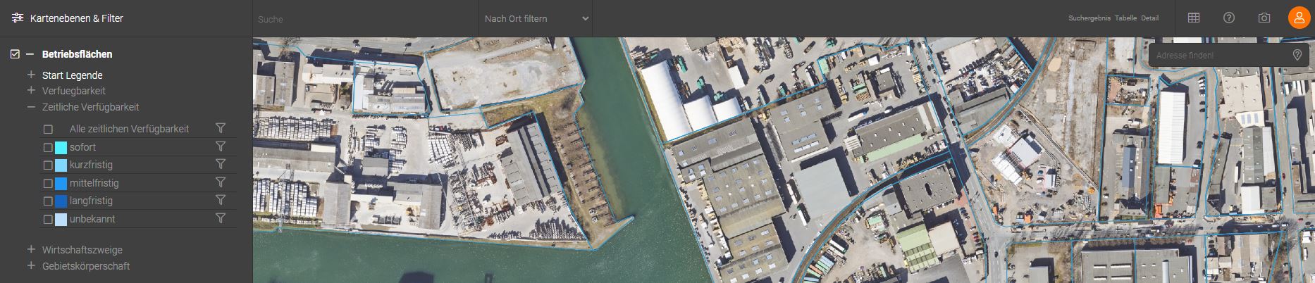 Die Fettschrift eines Layers bedeutet, dass der Layer ausgewählt und aktiv ist, dies geschieht durch Klick auf den Layernamen. Wenn ein Layer aktiviert ist, kann z.B. die Detailansicht oder die Tabelle der Daten des Layers aufgerufen werden.