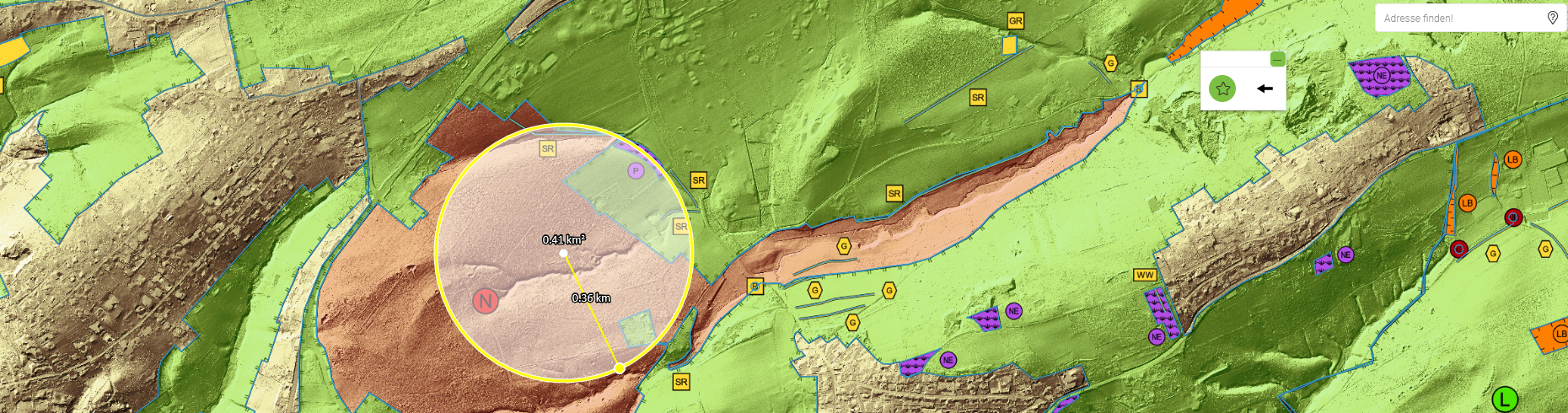 Die Abbildung zeigt ein Beispiel für eine Kreisselektion in der Karte