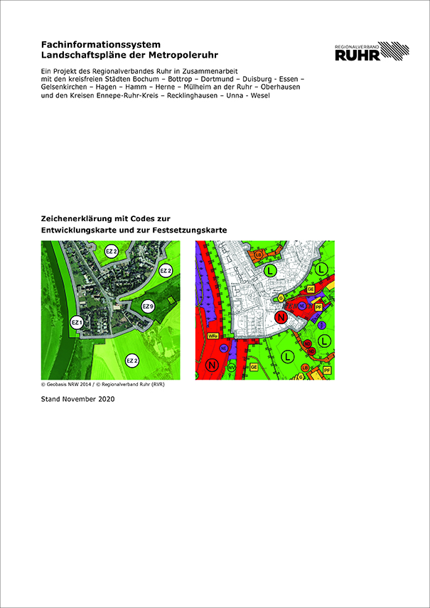 Titelblatt Zeichenerklärung mit LP-Codes zur Entwicklungskarte und Festsetzungskarte