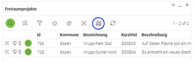 Beispiel einer Tabelleansicht aus der Fachanwendung Grüne Infrastruktur