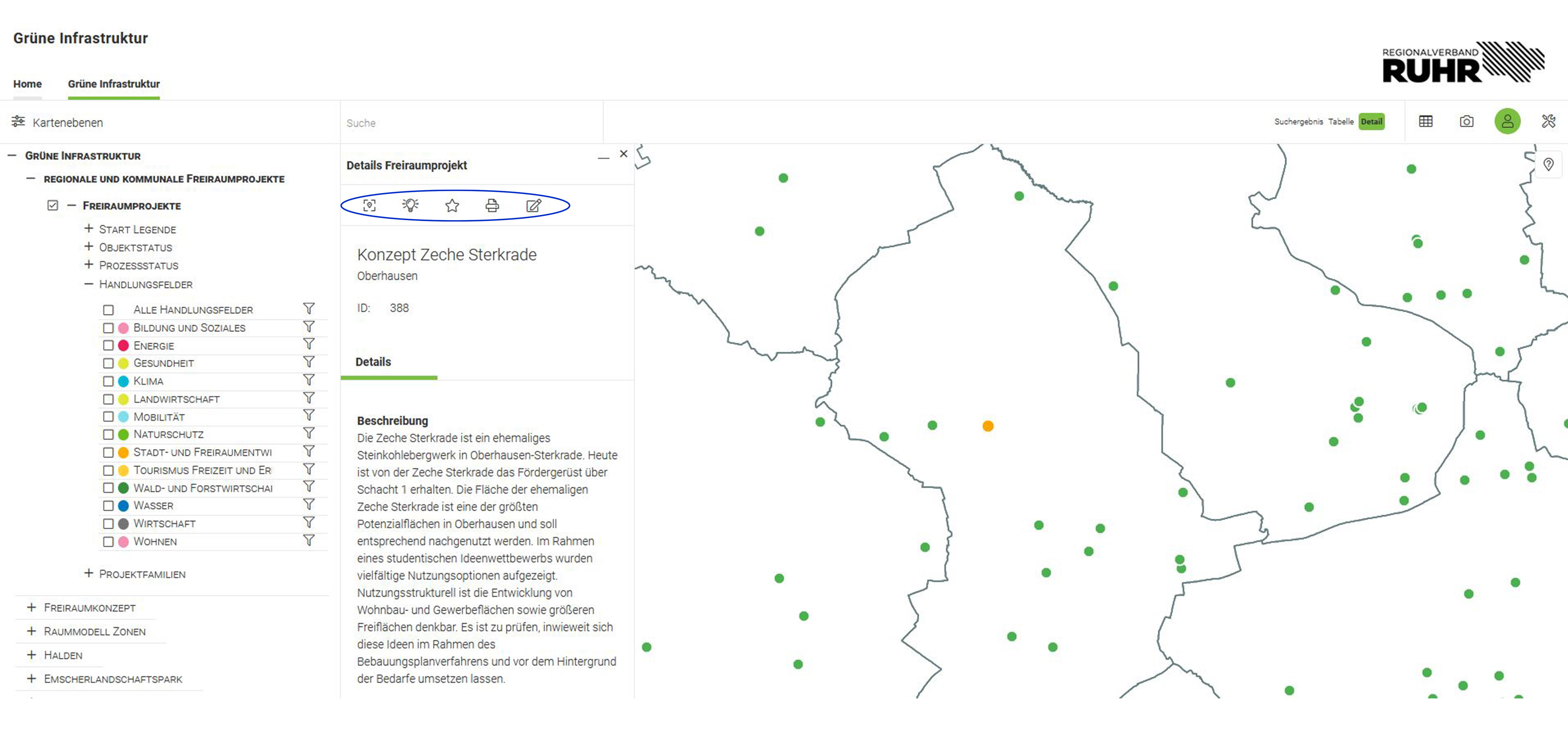 In der Kopfzeile der Detailinformationen befinden sich verschiedene Funktionen.