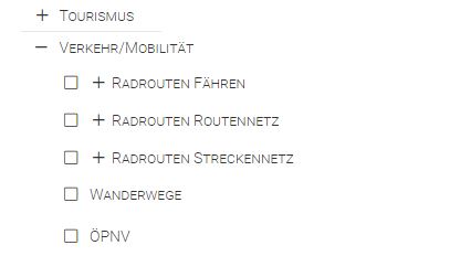 Es können verschiedene Kategorien von Fachdaten in der Karte angezeigt und verändert werden, z.B. kommunale Zugehörigkeit dargestellt oder optional verschiedene Fachdienste, Karten und Luftbilder zugeschaltet werden.